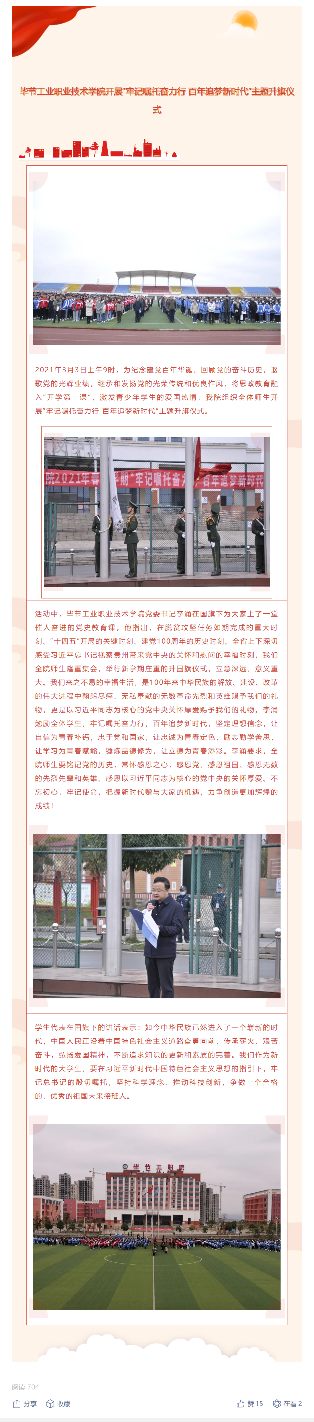 畢節工業職業技術學院開展“牢記囑托奮力行 百年追夢新時代”主題升旗儀式
