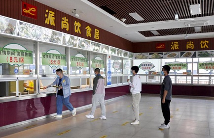 在班上,班主任每日登記到班人數,執行晨午晚“三檢”制度;在食堂,學生采取輪流錯峰方式,分段、錯時就餐。