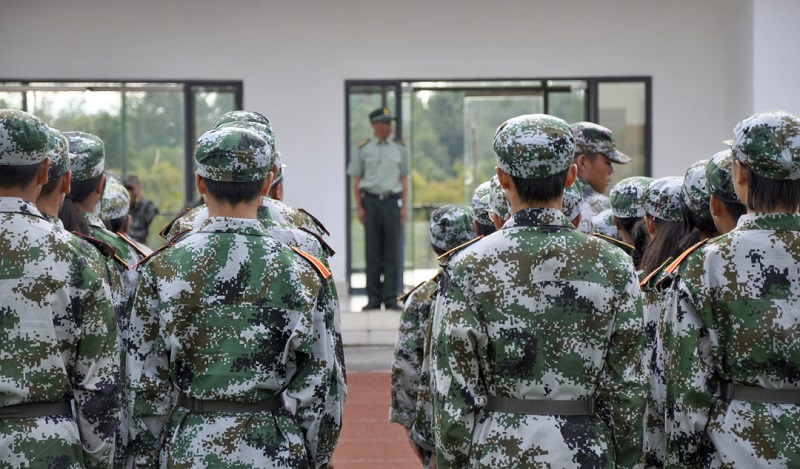 煥然一新的精神面貌,顯示出了新時代青年蓬勃向上的朝氣。軍訓(xùn)時的汗水在這一刻化作了無比的榮耀,彰顯著風(fēng)華正茂。