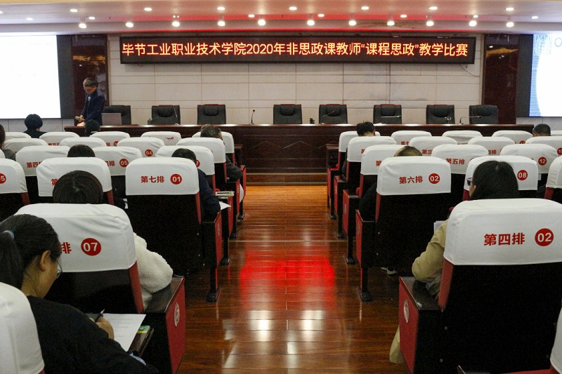為深入學習貫徹習近平總書記關于教育的重要論述、全國教育大會精神,貫徹落實中共中央辦公廳、國務院辦公廳《關于深化新時代學校思想政治理論課改革創(chuàng)新的若干意見》《高等學校課程思政建設指導綱要》等文件精神,把思想政治教育貫穿人才培養(yǎng)體系,全面推進學院課程思政建設,發(fā)揮好每門課程的育人作用,提高學院人才培養(yǎng)質(zhì)量,培養(yǎng)擔當民族復興大任的時代新人。20201014日下午,畢節(jié)工業(yè)職業(yè)技術學院在行政樓9樓會議室舉行2020年非思政課教師"課程思政"教學比賽,全院教職工觀摩了比賽。