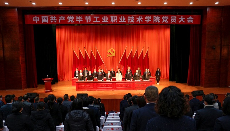 12月17日下午,中國共產黨畢節工業職業技術學院黨員大會第一次全體會議在學院會議中心隆重召開。會場內,金色黨徽在整齊劃一的鮮紅旗幟的襯托下熠熠生輝、引人矚目,佩帶醒目的黨徽和出席證的參會黨員們著裝整齊、精神抖擻,齊聚會議中心。冬日的畢節工業職業技術學院,充滿著一片喜慶氣氛。