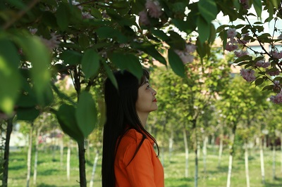 在校園櫻花樹下相遇