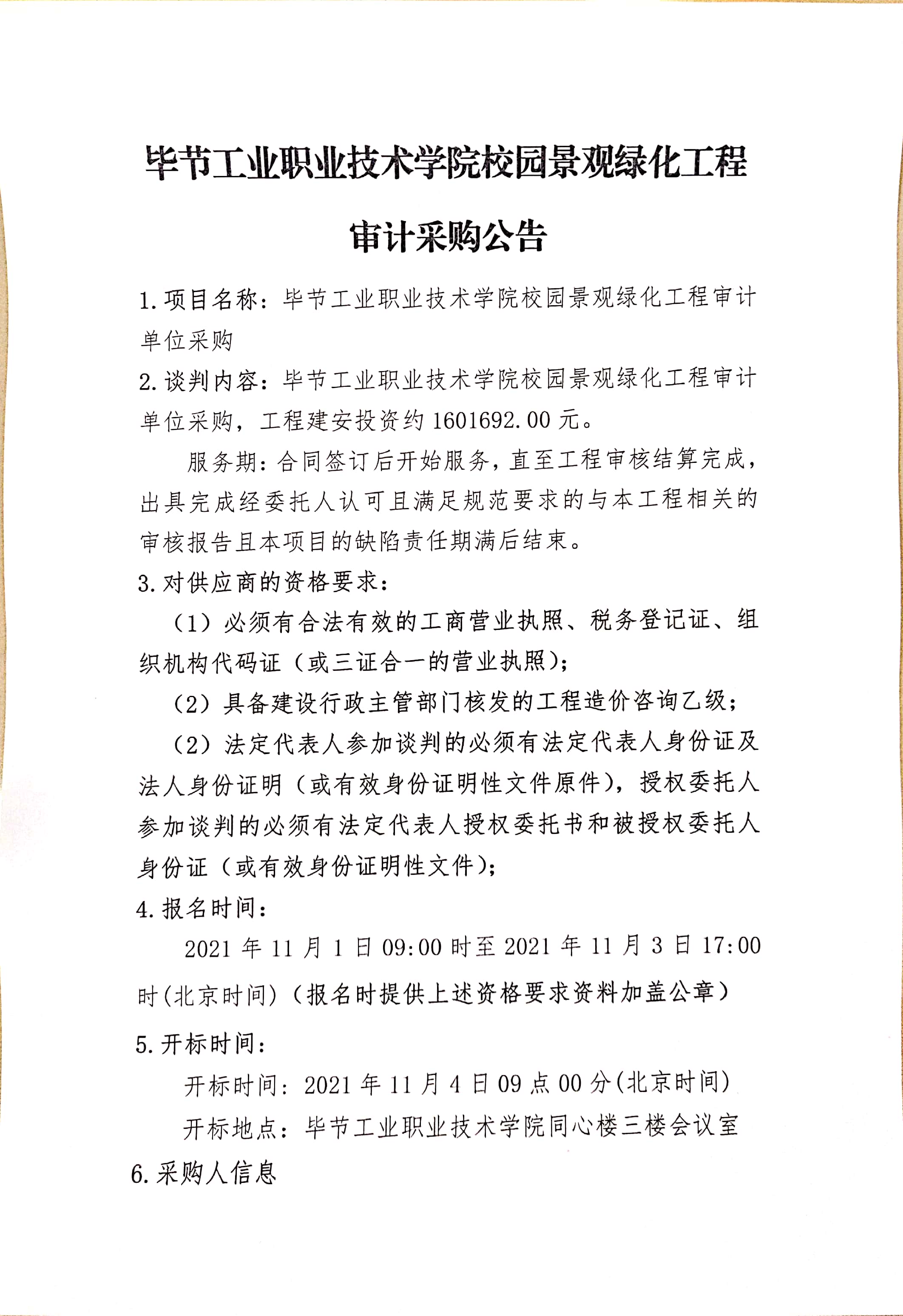 畢節工業職業技術學院校園景觀綠化工程審計采購公告