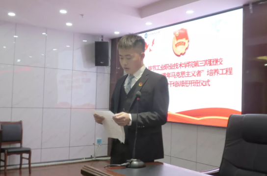 2021年12月16日畢節(jié)工業(yè)職業(yè)技術(shù)學(xué)院第三期團(tuán)校暨第三期“青馬工程”培訓(xùn)班在同心樓九樓會(huì)議室舉行開(kāi)班儀式。學(xué)院黨委委員、副院長(zhǎng)黃文碧,黨委委員、組織部部長(zhǎng)申開(kāi)谷,各系部團(tuán)總支負(fù)責(zé)人出席會(huì)議,院學(xué)生會(huì)主席團(tuán)成員、入黨積極分子、團(tuán)干、各系部?jī)?yōu)秀學(xué)生代表共90余人參加開(kāi)班儀式。開(kāi)班儀式由團(tuán)委負(fù)責(zé)人伍紹平主持。