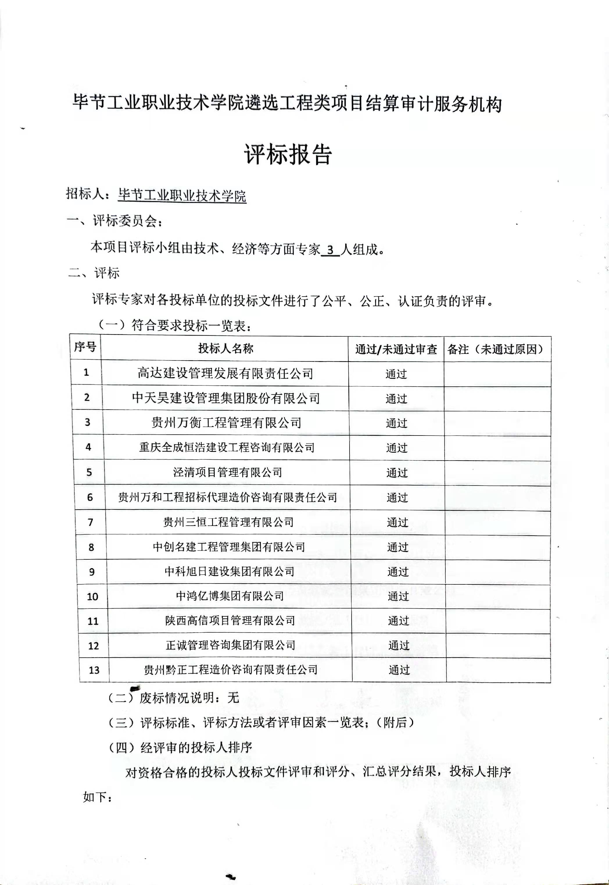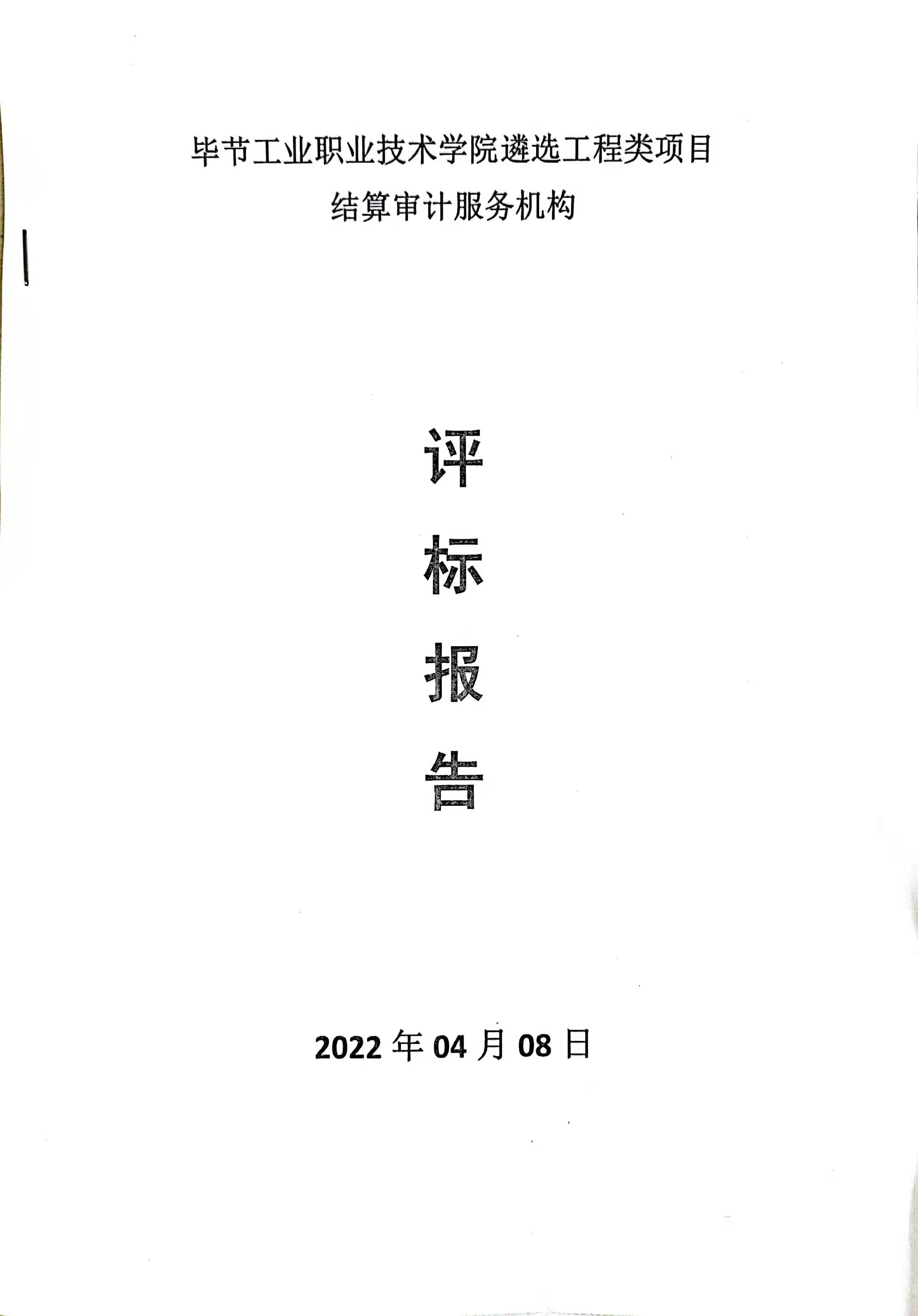 畢節(jié)工業(yè)職業(yè)技術(shù)學(xué)院遴選工程類項(xiàng)目結(jié)算審計服務(wù)機(jī)構(gòu)評價報告