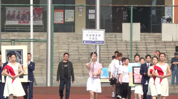 少年應當激情滿懷,斗志昂揚,砥礪前行。伴隨著慷慨激昂的運動員進行曲,學院系部方隊和運動員、裁判員方隊依次入場。整齊矯健的步伐,各具特色的展示,博得了在場師生的陣陣掌聲。