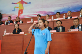 緊接著,運動員代表與裁判代表上臺宣誓,表達了他們對體育精神的嚴肅態(tài)度,并表示將在接下來的比賽中遵守比賽規(guī)則,力求賽出水平、賽出風格、賽出成績。