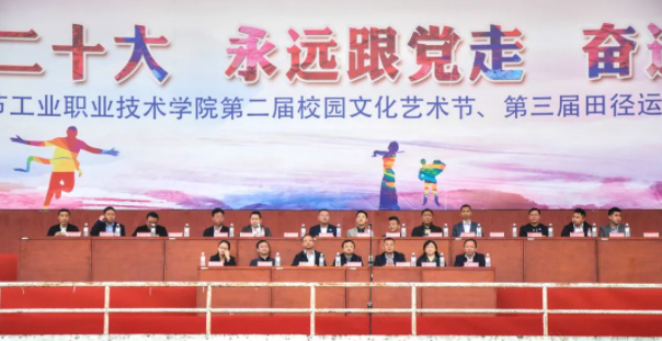 黨委委員、副院長黃瑛致開幕辭,她代表學校黨委對運動會、藝術節(jié)開幕表示祝賀,向辛勤付出的全體運動員、裁判員及工作人員致以誠摯的感謝。隨后,學院黨委副書記、院長邱國援宣布畢節(jié)工業(yè)職業(yè)技術學院第二屆校園文化藝術節(jié)、第三屆田徑運動會開幕!