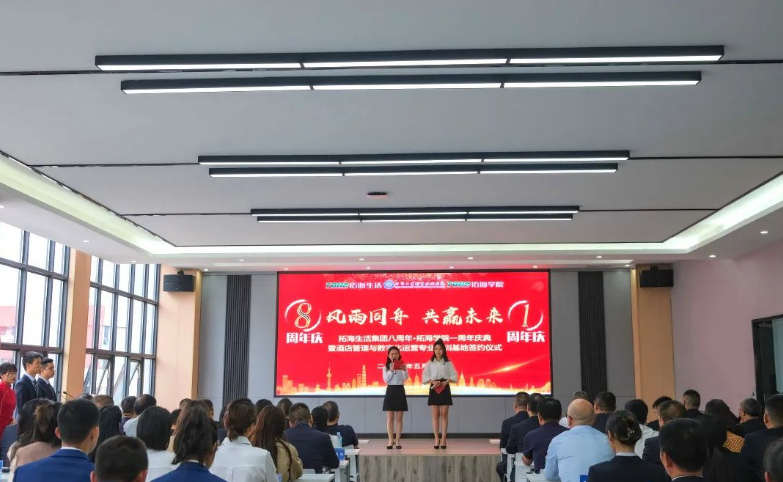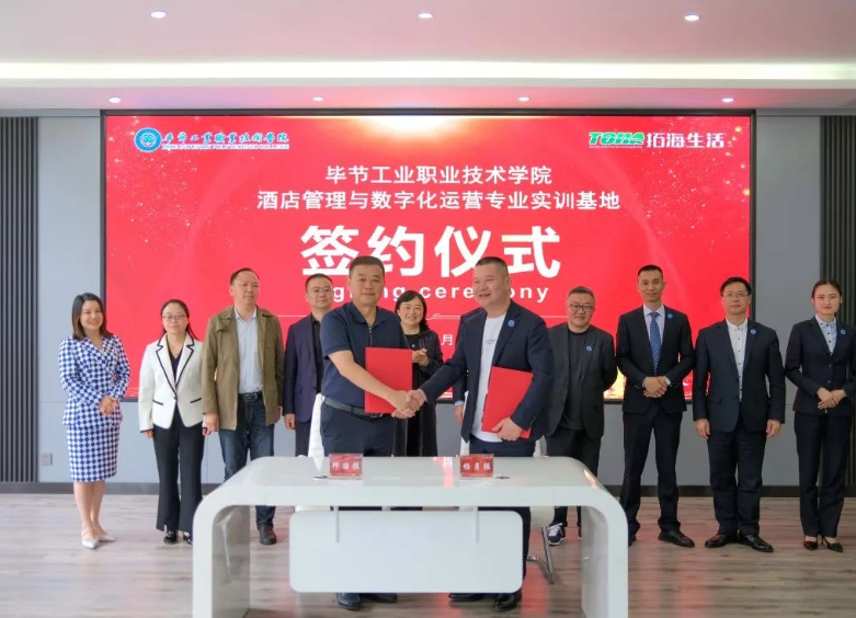 5月12日,畢節工業職業技術學院拓海學院一周年成立儀式暨畢節工業職業技術學院酒店管理與數字化運營專業實訓基地簽約儀式在拓海學院會議室舉行。學院黨委副書記、院長邱國援,黨委委員、副院長黃瑛、黃河、吳家文、黃文碧,拓海學院名譽院長、拓海生活集團總裁楊月強,拓海學院院長林彬出席儀式,拓海集團相關領導、員工代表及學院社會服務系師生代表參加儀式。 儀式現場 邱國援在致辭中指出,校企雙方共建拓海學院實訓基地,為相關專業學生提供了理實一體化教學場地和實習實訓平臺,改善了物業管理、酒店管理等專業的教學、實訓條件,使我院辦學條件、人才培養體系和教學質量得到不斷提高。同時,拓海集團積極參與物業管理專業人才培養方案修訂,從行業、企業角度提出了很多人才培養的意見建議,邀請行業專家來校講學,親自授課,使學生專業知識得到有力提升,使物業管理專業人才培養體系更加符合行業需求。下一步,希望校企雙方繼續深化校企合作機制、持續擴大合作范圍、協同提升合作質量,充分發揮拓海生活服務集團在物業管理方面的專業優勢,在人才培養方案、課程教學、實習實訓、教師培養等方面提供企業建議和技術指導,在教育教學、學生管理、素質培養、技能提升等方面與學院交換經驗,提升教師專業素質,強化學生技能提升,推進“工學結合”教學模式,共同提高學院育人質量。 邱國援在儀式上致辭 楊月強表示,過去一年,校企雙方本著優勢互補、資源共享、互惠雙贏、共同發展的原則,對校企合作模式進行了深層次的探索、創新與實踐,拓海學院的成立不僅推動了產教融合,也為學生提供了優質的實訓基地,為企業提供了強有力的人才保障。下一步,企業將繼續聯手學院不斷創新,共同培養高素質技術技能型人才,構建校企合作雙贏局面,助推職業教育改革和地方經濟社會高質量發展。 楊月強在儀式上講話 儀式上,邱國援代表學院與拓海生活集團簽訂了《畢節工業職業技術學院酒店管理與數字化運營專業實訓基地(中心)建設合作協議》。學院與拓海生活集團將再次攜手,共建畢節工業職業技術學院酒店管理與數字化運營專業實訓基地,共同承擔科研項目、實現信息共享,培養更多高質量的技能人才,為畢節全面推進鄉村振興提供有力的人才支撐。 簽約儀式現場 拓海學院院長林斌、社會服務系主任呂振欣為優秀學生羅達麗、李定奎頒發榮譽證書 優秀學生代表羅達麗發言 儀式中的精彩節目