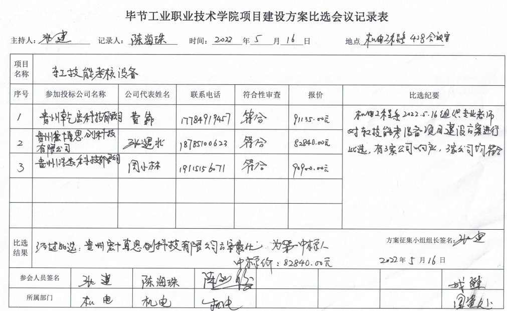 畢節工業職業技術學院車工技能考核設備項目征集方案必選結果公示