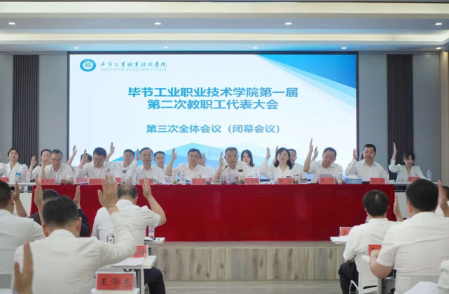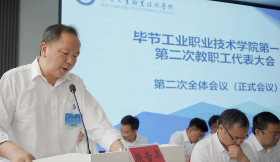 大會(huì)還聽(tīng)取了《畢節(jié)工業(yè)職業(yè)技術(shù)學(xué)院 2021年財(cái)務(wù)預(yù)算執(zhí)行情況和2022年財(cái)務(wù)預(yù)算報(bào)告》《畢節(jié)工業(yè)職業(yè)技術(shù)學(xué)院工會(huì)工作報(bào)告》。書(shū)面審議了《畢節(jié)工業(yè)職業(yè)技術(shù)學(xué)院第一屆第一次教職工代表大會(huì)提案工作落實(shí)情況和第一屆第二次教職工代表大會(huì)提案征集審查情況報(bào)告(草案)》《畢節(jié)工業(yè)職業(yè)技術(shù)學(xué)院專業(yè)技術(shù)職務(wù)評(píng)聘管理暫行辦法(試行)》《畢節(jié)工業(yè)職業(yè)技術(shù)學(xué)院章程(修訂稿)》《畢節(jié)工業(yè)職業(yè)技術(shù)學(xué)院績(jī)效考核方案(修訂稿)》《畢節(jié)工業(yè)職業(yè)技術(shù)學(xué)院教師教學(xué)超課時(shí)補(bǔ)貼計(jì)算辦法(修訂稿)》。會(huì)議一致認(rèn)為,學(xué)院工作報(bào)告回顧簡(jiǎn)明扼要,總結(jié)成績(jī)客觀全面、實(shí)事求是,描繪藍(lán)圖催人奮進(jìn),部署工作扎實(shí)有力,符合中央、省委、市委精神和要求,是一個(gè)實(shí)事求是、措施得力、振奮人心的報(bào)告;會(huì)議一致認(rèn)為,2021年財(cái)務(wù)預(yù)算執(zhí)行情況和2022年財(cái)務(wù)預(yù)算報(bào)告客觀真實(shí),全面反映了學(xué)院經(jīng)費(fèi)管理使用情況,學(xué)院基本建設(shè)工作、資產(chǎn)購(gòu)置、學(xué)科建設(shè)、教學(xué)科研經(jīng)費(fèi)、后勤保障的投入和資金管理使用規(guī)范合理,充分保障了學(xué)院的建設(shè)與發(fā)展;會(huì)議一致認(rèn)為,學(xué)院工會(huì)工作報(bào)告實(shí)事求是,客觀務(wù)實(shí),全面總結(jié)了工會(huì)2021年的工作,思路清晰地謀劃了2022年主要工作;會(huì)議一致認(rèn)為,第一屆第一次教職工代表大會(huì)提案落實(shí)情況及第一屆第二次教職工代表大會(huì)提案案征情況報(bào)告觀真實(shí)地反映了一屆一次教代會(huì)代表提案和提案辦理情況,體現(xiàn)了學(xué)院決策的科學(xué)化、民主化和規(guī)范化,保障教職工民主管理和監(jiān)督的權(quán)利,切實(shí)推動(dòng)了學(xué)院各項(xiàng)事業(yè)高質(zhì)量發(fā)展;會(huì)議一致認(rèn)為,畢節(jié)工業(yè)職業(yè)技術(shù)學(xué)院專業(yè)技術(shù)職務(wù)評(píng)聘管理暫行辦法(試行)、畢節(jié)工業(yè)職業(yè)技術(shù)學(xué)院章程(修訂稿)、畢節(jié)工業(yè)職業(yè)技術(shù)學(xué)院教師教學(xué)超課時(shí)補(bǔ)貼計(jì)算辦法(修訂稿)指導(dǎo)思想明確,修訂依據(jù)充分,是科學(xué)民主決策的過(guò)程,對(duì)于促進(jìn)學(xué)院完善內(nèi)部治理結(jié)構(gòu)、建設(shè)現(xiàn)代大學(xué)制度體系具有重大現(xiàn)實(shí)意義。