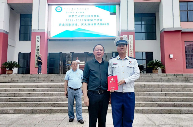 最后,學院黨委委員、副院長黃河為金海湖消防大隊黃河參謀頒發了消防輔導員聘書。 此次活動的成功舉行,不僅讓學院師生更加了解防災減災安全知識,安全是一切工作的前提,掌握消防安全知識是全體師生義不容辭的責任。畢節工業職業技術學院一直高度重視安全工作,本次消防應急疏散演練使抽象的安全演練變成具體的實戰演習,強化了師生的安全意識,提升了學生防火自救的能力,使全院師生進一步了解了災害發生時的應對措施,也切實加強了學院的安全教育工作,為創建平安和諧校園提供了堅實保障。