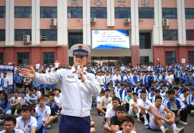 演練中,學生代表還實地體驗了使用消防救生梯逃生的應急處置流程,直觀地體驗面對危險時的正確自救方法以及冷靜有序的撤離。 演練結束后,消防員給學生普及了消防知識,金海湖消防大隊隊長朱海以真實案例將消防安全知識深入淺出地進行講解,介紹了校園常見火災發生的原因及防范措施,講解了使用滅火器撲救初期火災方法。 朱海在總結演練過程時指出,整個演練安全、高效、有序,達到了預期目標,取得了明顯的成效,檢驗了學院的消防工作。他要求,全體師生要牢固樹立安全防范意識,熟練掌握防踩踏規范動作,學會自我保護的方法,確保在發生突發情況時應急工作能快速、高效、有序地進行,從而最大限度地保護全體師生的生命安全,減少不必要的傷害。 學院黨委委員、副院長黃河結合校園安全工作實際情況,提出三點要求:一是要求廣大師生牢固樹立“安全第一、生命至上”的理念,強化安全紅線意識,在思想上繃緊安全這根弦;二是要求廣大師生認真對待,珍惜這次全疏散演練、滅火演練及消防科普活動的機會,掌握在緊急情況下迅速逃生、自救、互救的基本技能,提高應對火災突發應對能力;三是要求相關職能部門要堅持強化安全防范,堅持把校園安全隱患排查整治作為一項重要工作常抓不懈、警鐘長鳴,真正做到防患于未然,有效預防和堅決遏制安全事故的發生。