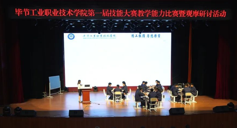 2022年6月29日,畢節工業職業技術學院第一屆技能大賽教學能力比賽在會議中心圓滿舉行。此次競賽以提升教師的教學能力為主旨,力求讓我院教師進一步樹立先進教育教學理念,應用現代教學方法,堅持知識傳授、能力培養與價值教育相結合,助推學院高質量內涵式發展。