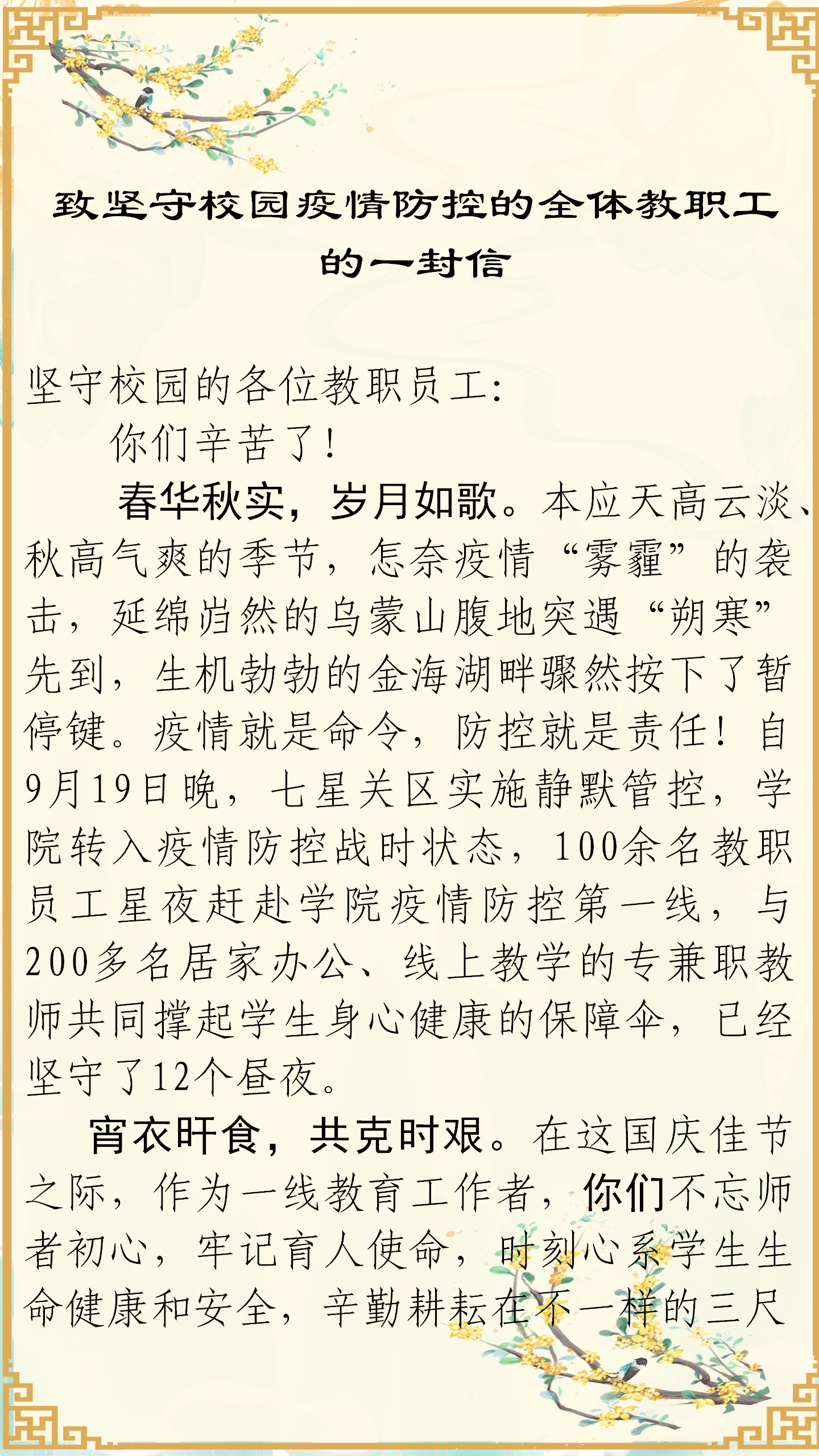 致堅(jiān)守校園疫情防控的全體教職工的一封信