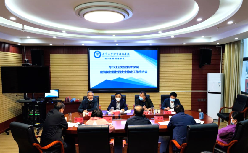 10月8日下午,畢節工業職業技術學院召開疫情防控暨校園安全穩定工作推進會,傳達相關文件精神,并對疫情防控和安全穩定相關工作作安排部署。市教育局疫情防控督查組蘭明組長、成員張鵬飛,學院黨委書記李涌,黨委副書記、院長邱國援,黨委副書記付善華,黨委委員、副院長黃瑛、吳家文、黃河、黃文碧出席會議,相關部門負責人及工作人員參加會議。
