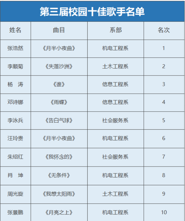 第三屆十佳歌手已然誕生