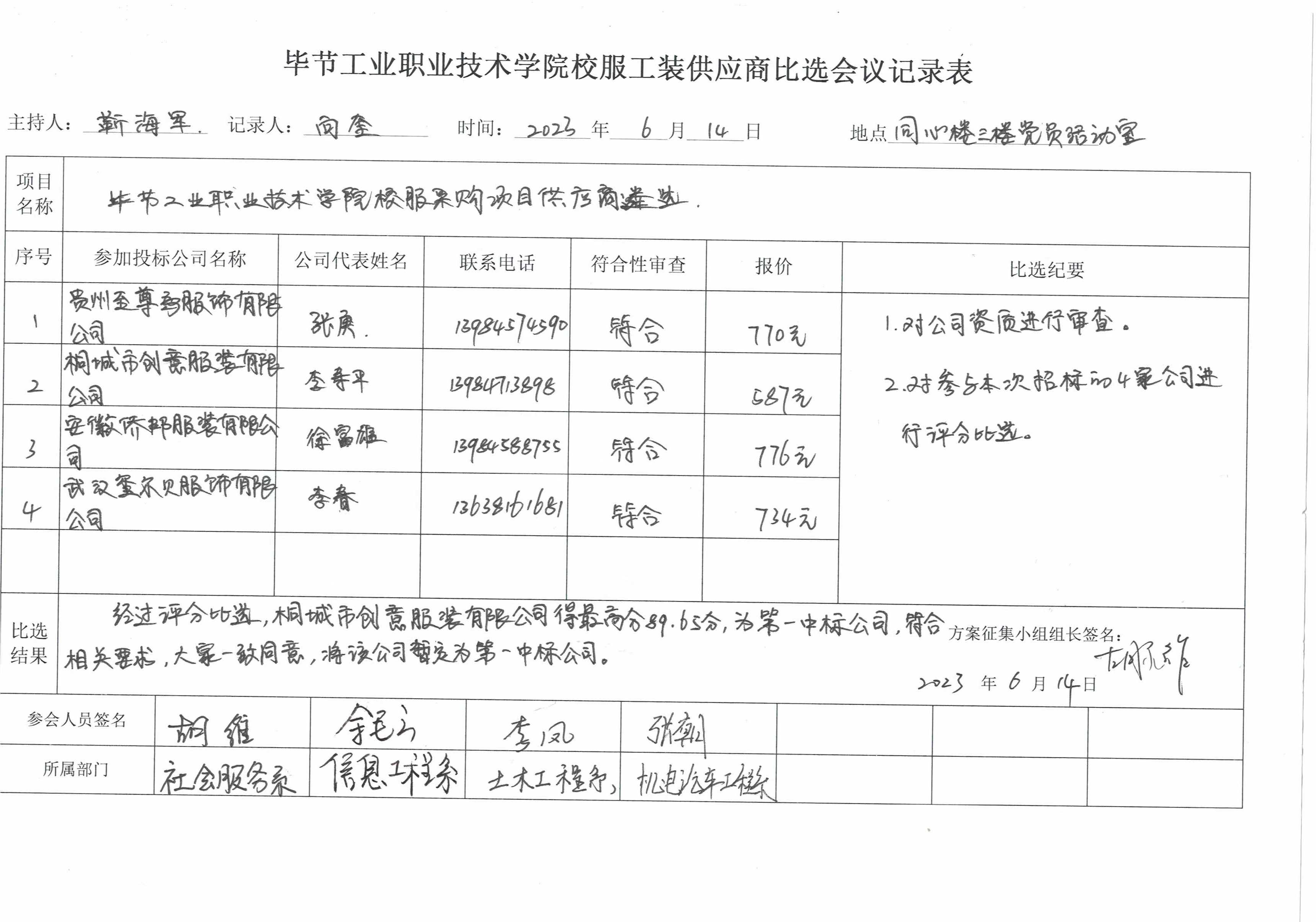 畢節工業職業技術學院校服采購項目供應商遴選中標公告