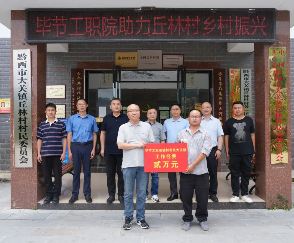 調研組一行實地走訪調研了丘林村紅軍渡口、培訓中心等地,看望學院暑期“三下鄉”赴丘林村社會實踐師生和學院駐村干部,詳細了解大關鎮、丘林村鄉村振興發展情況,共同謀劃推進鄉村振興具體措施并召開調研座談會。 會上,調研組一行聽取大關鎮和丘林村推進鄉村振興情況,了解發展規劃和旅游業發展、農特產業發展、鄉村治理等方面面臨的困難和問題。 李涌表示,近年來,丘林村在黔西市委市政府、大關鎮黨委政府的領導下,在鄉村建設發展治理和產業發展等方面取得良好成效,發展迅速。畢節工職院將充分發揮自身優勢,以打造示范為目的助力丘林村鄉村振興高質量發展。他強調,丘林村要堅持旅游發展定位,根據地方特點發揮資源優勢、創新發展理念,緊盯發展目標,充分依托山水自然風光,深挖紅色文化資源,豐富完善旅游線路,提升景區環境和服務等級,改善基礎設施,打造特色民宿、特色美食,在鄉村旅游產業上持續發力,走出一條具有時代特征、地域特點的文化旅游與鄉村振興之路;要大力發展農業經濟,突出科學種植、改良品種、提高品質,促進經濟林高產優質發展;要充分利用地域及氣候優勢,打造季節經濟作物,發展季節特色農產品,同時制定相應政策措施,引進龍頭企業,做優做強深加工,打造特色鮮明的旅游特產,全面形成文化、產業與旅游融合發展的良好局面。 邱國援介紹了學院情況并表示,丘林村要充分利用當地資源、區位、文化優勢,做好規劃、設計和管理,全面推進鄉村旅游業和產業發展。下一步,學院將充分發揮優勢,在產業打造、組織聯建、產品營銷、人才培養、交流協作等方面與丘林村形成合力,加大對鄉村人才、技能技術等方面支持,深入開展組織聯建,助力拓寬鄉村企業合作銷售渠道,打造特色突出、設施完善的紅色教育基地和學生社會實踐基地,引進企業參與鄉村振興,為推動鄉村經濟社會發展提供智力、資源和平臺支持,實現校地互利共贏、共同發展。 各部門負責人就發揮職能服務丘林村鄉村振興進行了交流發言。 會后,學院與丘林村舉行了畢節工業職業技術學院思政實踐教育基地、學生社會實踐基地授牌儀式,并劃撥駐村工作經費2萬元。