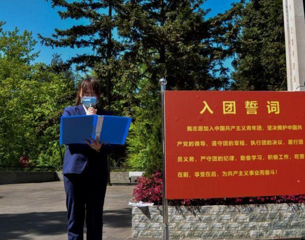 隨后,同學們面向團旗,高舉右拳,再次重溫入團誓詞,鏗鏘的誓言提醒著每一位團員要牢記自己的身份與職責,堅定“不忘初心,牢記使命”的理想信念,將英雄事跡銘記于心,將艱苦奮斗的精神踐行到日常學習、工作中。