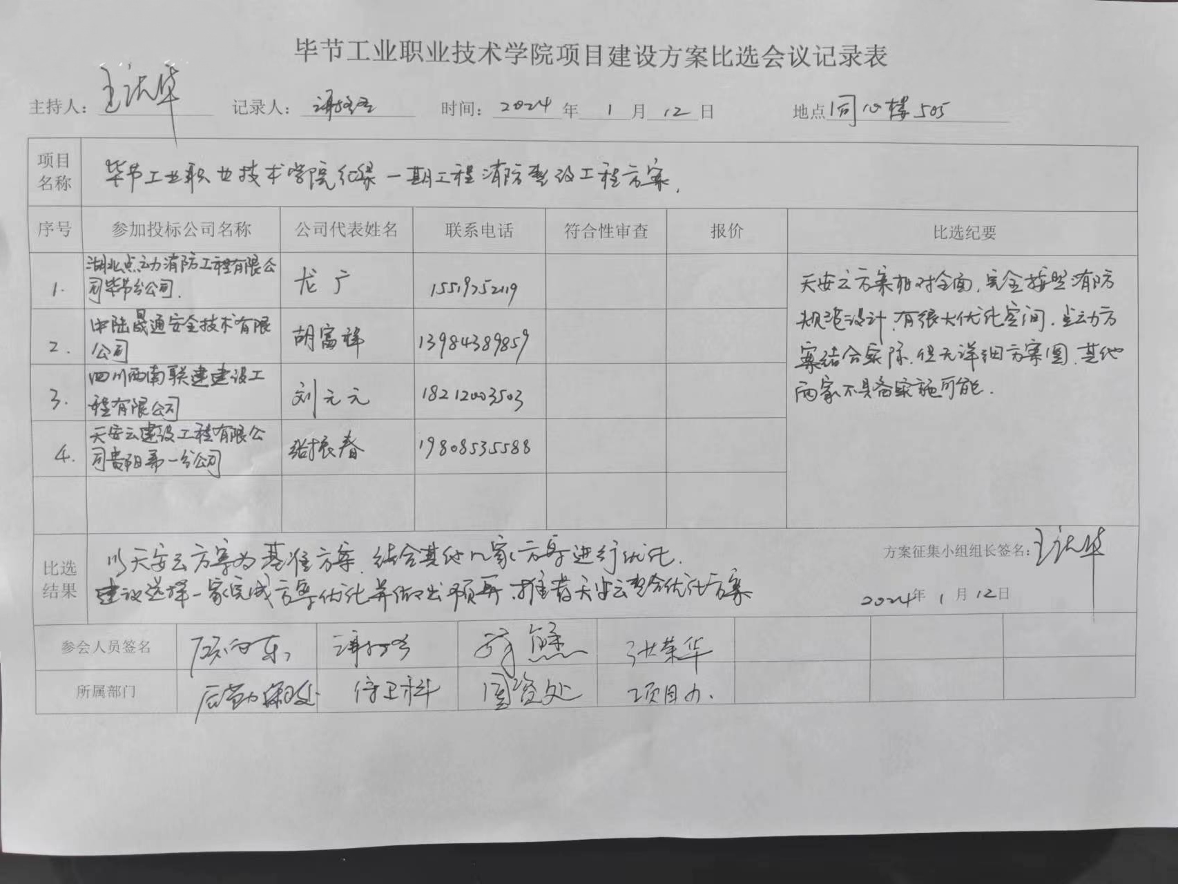 畢節工業職業技術學院征集一期工程消防整改工程方案比選結果公示
