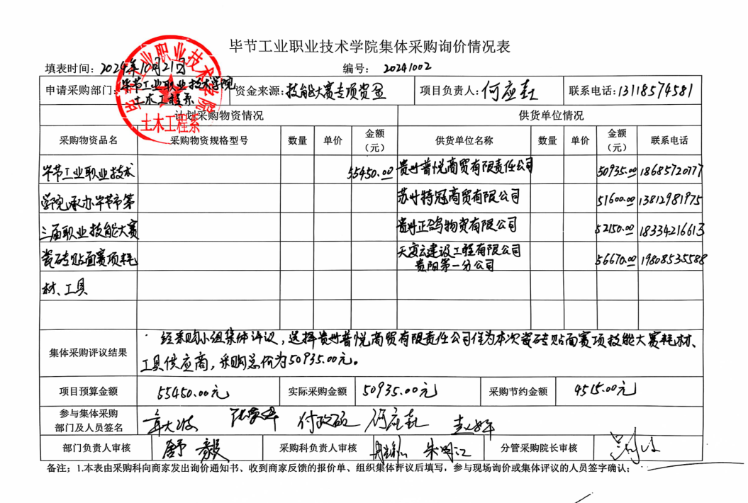 土木工程系承辦畢節(jié)市人社局第三屆職業(yè)技能大賽瓷磚貼面賽項(xiàng)耗材、工具詢價(jià)情況公告