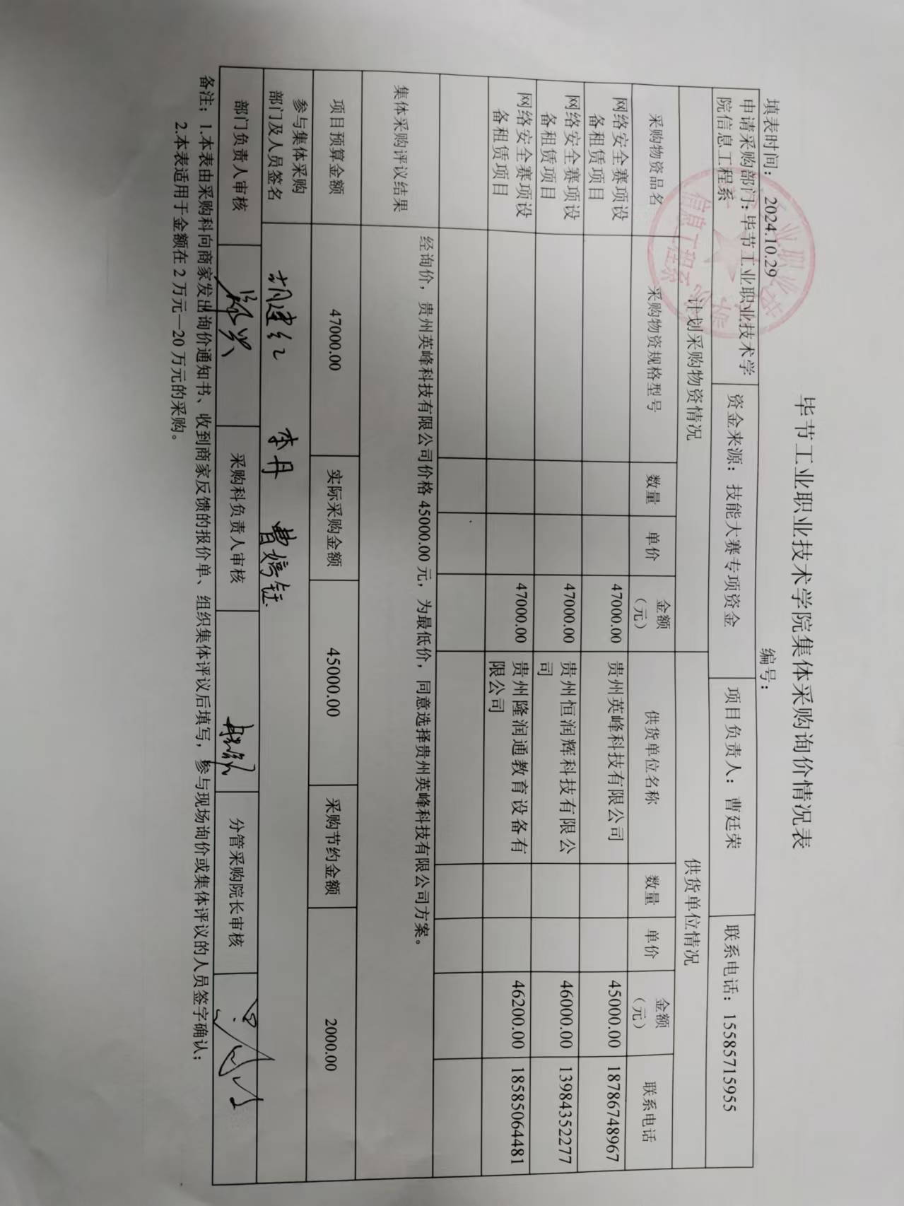 畢節(jié)工業(yè)職業(yè)技術(shù)學(xué)院網(wǎng)絡(luò)安全賽項(xiàng)租賃項(xiàng)目詢價結(jié)果公示