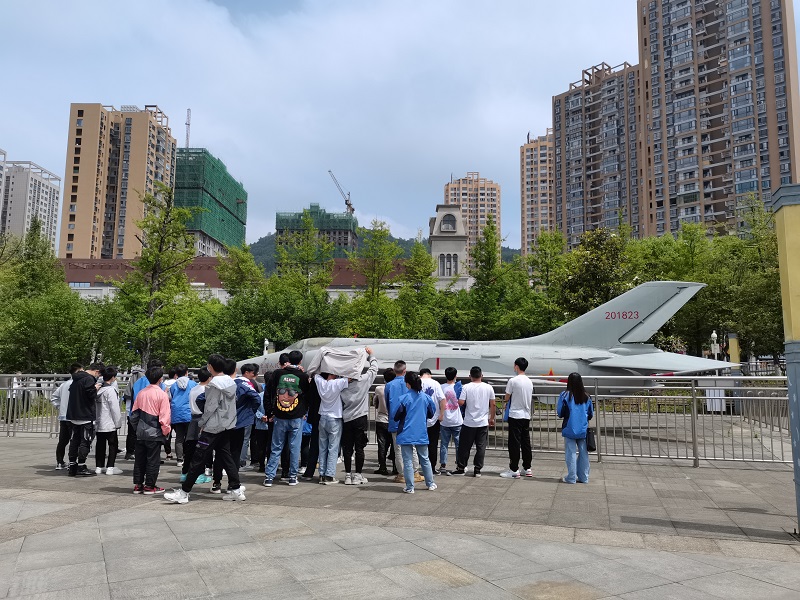 隨后,同學們又參觀了中國研制的單座雙發動機超音速強5-強擊機,通過聽取解說和近距離接觸,對中國強擊機的發展史有了一定的了解收獲。
