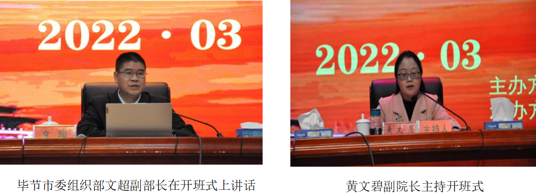 受畢節市委組織部委托,市委組織部文超副部長出席了開班式并發表講話,畢節工業職業技術學院黨委委員、副院長黃文碧同志主持開班式。