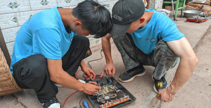 圖為實踐小隊隊員為村民維修電磁爐