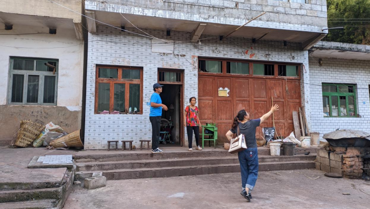 圖為指導老師帶著實踐小分隊對村民的住戶進行考察