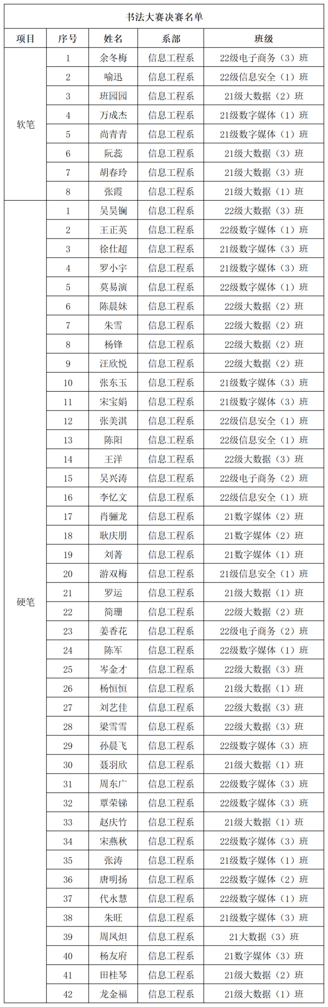 信息工程系開展書法大賽初賽