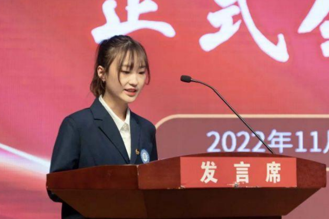 (學生代表大會總監(jiān)票人譚悅宣布新一屆學生會主席團成員、學生會委員會委員名單)