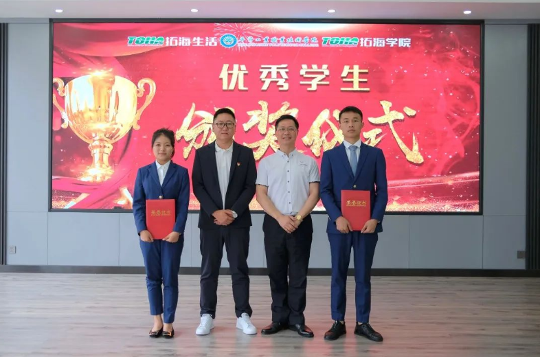 拓海學(xué)院院長(zhǎng)林斌、社會(huì)服務(wù)系主任呂振欣為優(yōu)秀學(xué)生羅達(dá)麗、李定奎頒發(fā)榮譽(yù)證書(shū)