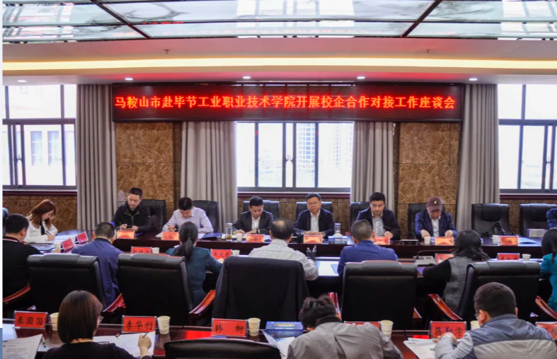 2021年3月31日,馬鞍山市人社局黨組書記、局長李懷東一行攜當地企業家代表赴我院開展校企合作座談會。畢節工業職業技術學院黨委副書記付善華、黨委委員、副院長黃瑛、黨委委員、副院長黃文碧及相關部門負責人出席會議,畢節市人社局黨組成員、副局長王孕秋陪同參與活動。