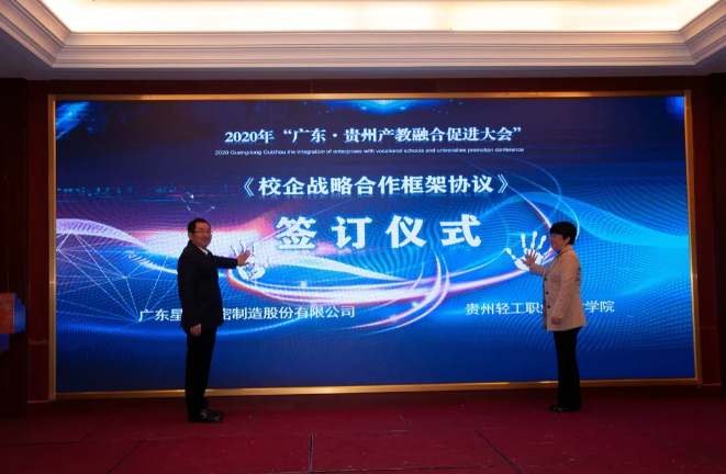 廣東輕工職業(yè)技術(shù)學(xué)院黨委書記杜安國(guó)表示,落實(shí)廣黔結(jié)對(duì)幫扶舉措,發(fā)揮企業(yè)與教育的互促力量,在廣東·貴州產(chǎn)教融合促進(jìn)大會(huì)的廣闊平臺(tái)上,為校企合作牽線搭橋,共同建立長(zhǎng)期緊密的合作關(guān)系,促進(jìn)職業(yè)教育高質(zhì)量發(fā)展,實(shí)現(xiàn)職教幫扶促發(fā)展,產(chǎn)教融合謀新篇。